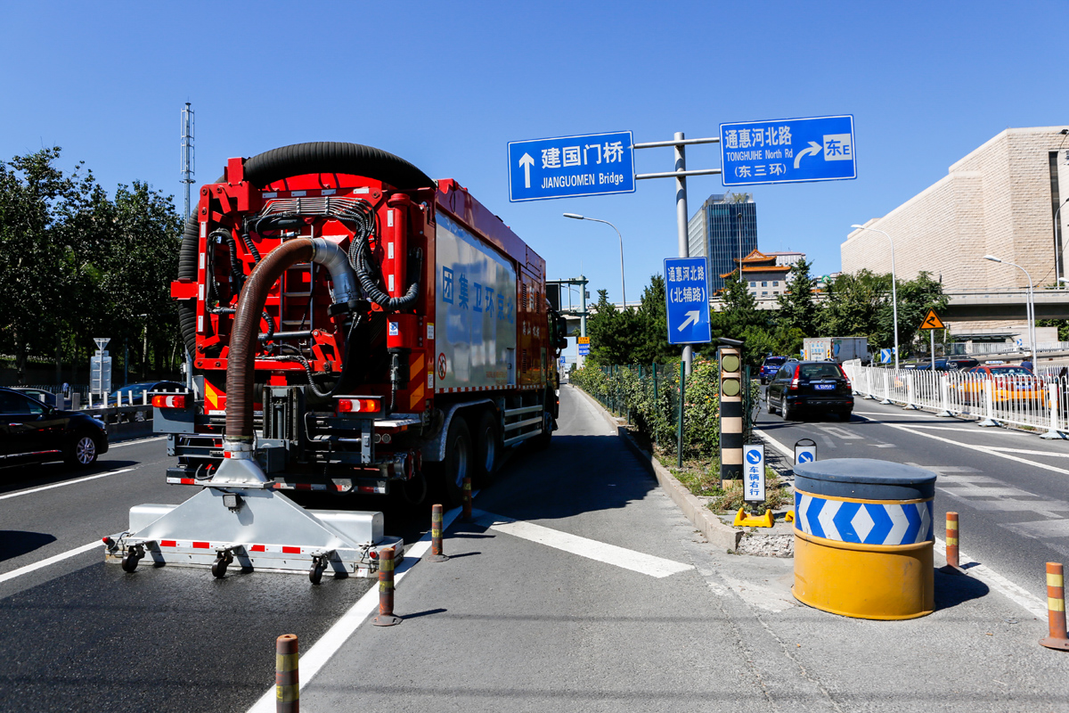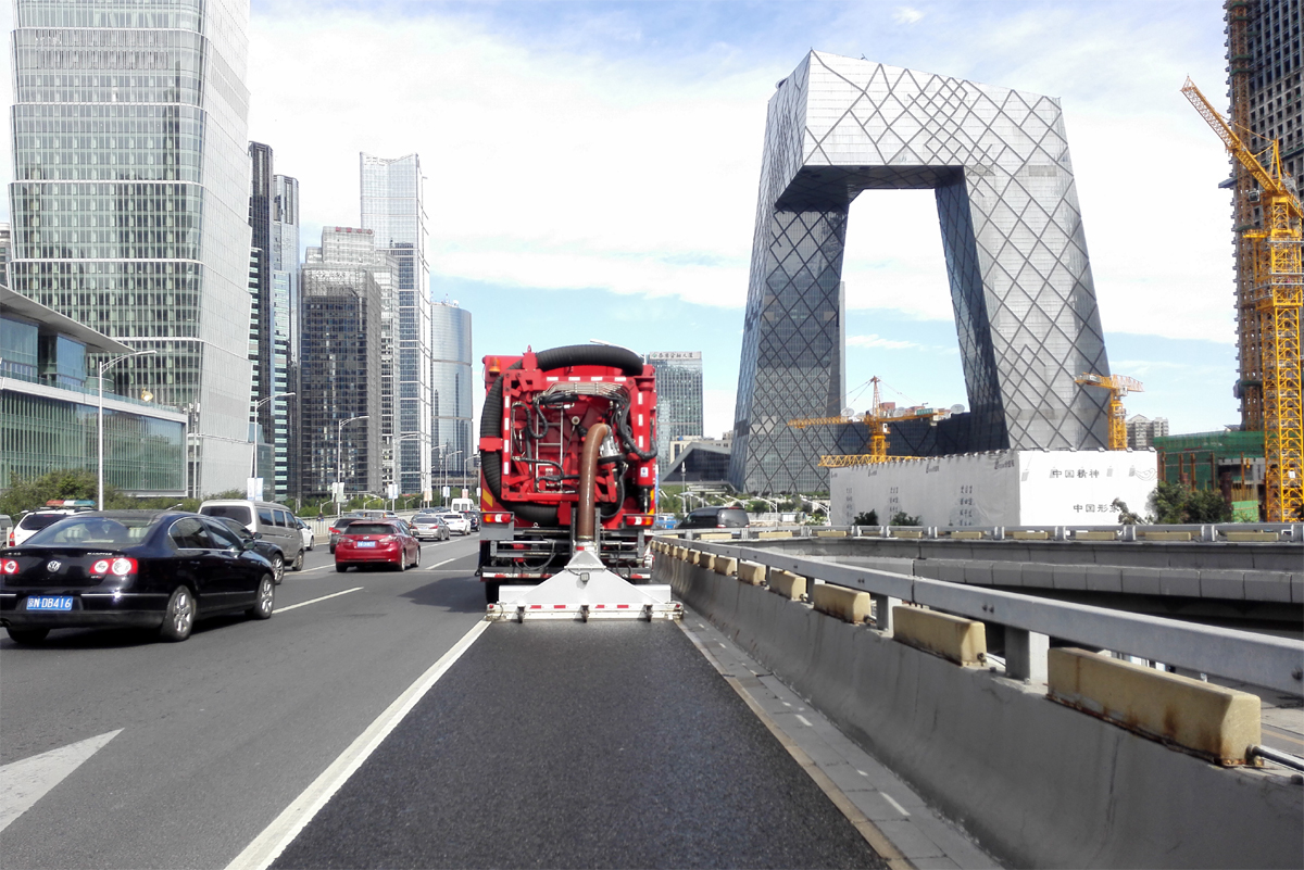 北京市天安門廣場(chǎng)、二環(huán)線、三環(huán)線、長(zhǎng)安街等主干道路面的深度清潔施工,經(jīng)過(guò)清理的路面顯露出了路面鋪設(shè)之初的本色,縫隙可見(jiàn),標(biāo)線清晰,與只經(jīng)過(guò)普通機(jī)掃的路面形成鮮明對(duì)比,此次大范圍清潔之后,使得城區(qū)主干道更干凈,還北京一片藍(lán)天。
