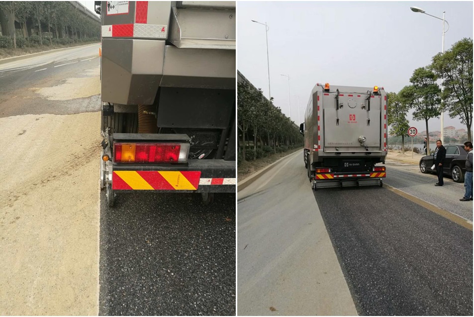 每當(dāng)演示時(shí),強(qiáng)大的“海山颶風(fēng)牌”重型道路污染清除車行駛過的道路煥然一新,猶如新鋪設(shè)一般,石子顆粒清晰可見顯得格外凸顯,更有好奇者嘗試把手指往地上一抹,磨蹭手指竟然一塵不染,真正達(dá)到“席地而坐”的標(biāo)準(zhǔn),很多現(xiàn)場(chǎng)觀看該設(shè)備作業(yè)后的客戶及市民,都驚嘆頭一回看見這么厲害的“神器”。