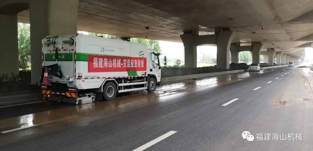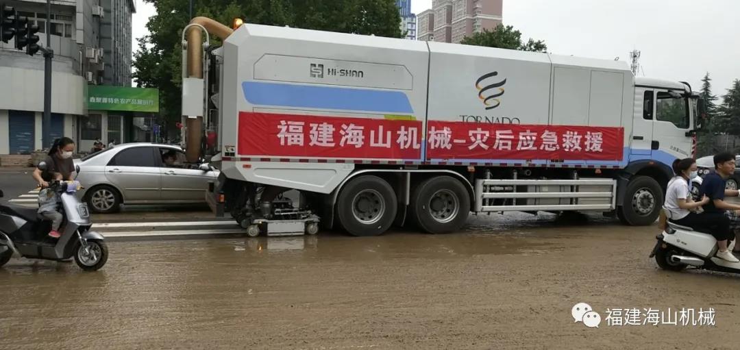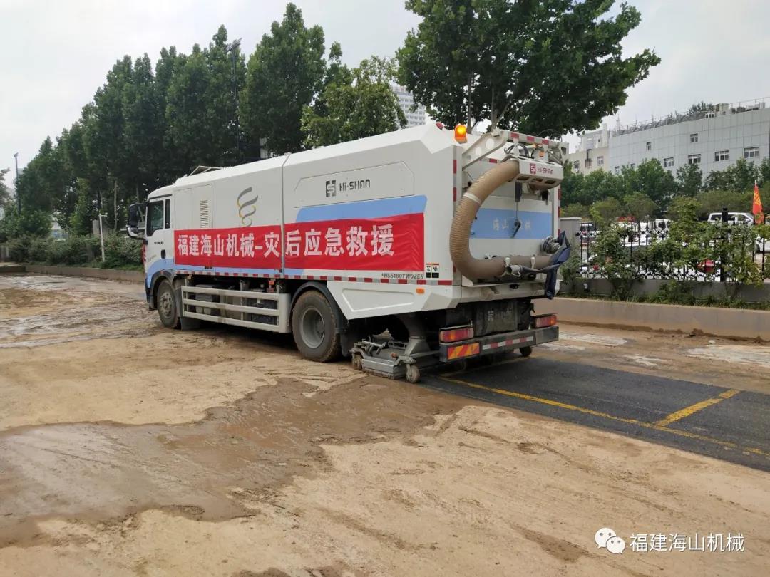 災(zāi)情就是命令,搶險(xiǎn)就是責(zé)任。在災(zāi)難發(fā)生之后,海山機(jī)械立即成立應(yīng)急救援小組,組員驅(qū)車數(shù)千里之遙,晝夜兼程,第一批5臺(tái)道路污染清除車終于在7月22日早晨趕到了災(zāi)區(qū)鄭州。顧不上舟車勞頓的疲憊,一到達(dá)災(zāi)區(qū),救援小組的成員們就馬上投入了救援工作。救援車輛作業(yè)過的地方,路面淤泥完全被清除,道路恢復(fù)暢通。