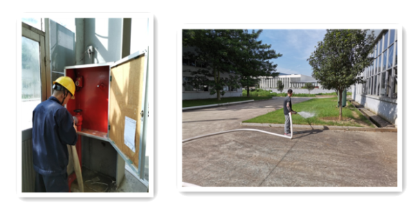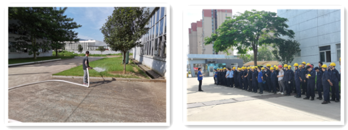 1、2022年6月24日下午14:30分左右,公司廠內(nèi)制造車間因車輛添加液壓油時(shí),不小心飛濺一些到放置車底下的紙皮上,調(diào)試人員未及時(shí)將含有液壓油的紙皮按要求進(jìn)行處理。該車輛剛好有一項(xiàng)技改項(xiàng)目需要完成,配焊人員在焊接前未注意觀察車底情況,導(dǎo)致在焊接時(shí)火星不斷飛濺到含油紙皮上,于14:55分左右出現(xiàn)火情?,F(xiàn)場(chǎng)應(yīng)急人員立即組織消防逃生及滅火,并立即報(bào)告應(yīng)急辦公室,由應(yīng)急辦公室立即向應(yīng)急指揮部報(bào)告。應(yīng)急指揮部根據(jù)初期火情控制情況(應(yīng)急救援人員滅火得當(dāng),于14:56分左右使用滅火器將火撲滅)及預(yù)警級(jí)別(車間級(jí)),啟動(dòng)車間級(jí)應(yīng)急響應(yīng)。相關(guān)部門配合做好應(yīng)急響應(yīng)工作,待達(dá)到應(yīng)急終止條件后,終止應(yīng)急響應(yīng)。最后對(duì)現(xiàn)場(chǎng)進(jìn)行洗消、并進(jìn)行工作總結(jié)與評(píng)估。突發(fā)環(huán)境事件應(yīng)急預(yù)案演練圖片如下:
