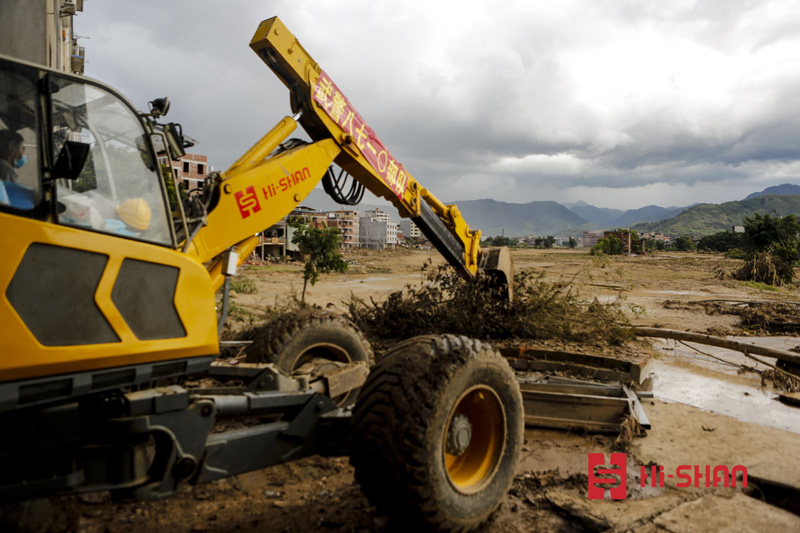 One for all and all for one. When Minqing County was hit by the flood,Hishan Machinery was responsive and quickly assembled a rescue team and bring with them Hishan’s emergency rescue equipment – anti-pollution vehicles and walking excavator and rushed to Bandong village in Minqing County, the village hardest-hit by thphoon”Nepartak”. The rescue team worked closely with armed police forces stationed in Fujian to help clear the roads and open new rescue channels for disaster relief materials to in. the rescue work done by Hishan won appraise from You Quan , Fujian CPC Party Fujian Provincial secretary and people in disaster area.
