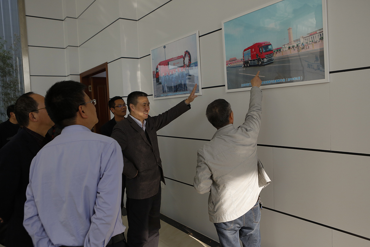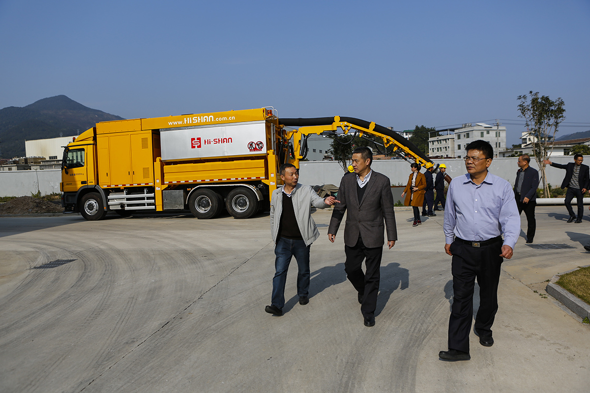 Accompanied by executive vice president Zhang Qiuxian, Yan Xiaotong and his entourage watched live demonstrations of Hishan’s pollution removal vehicles, walking excavator, suction excavator and vacuum garbage collection system. While touring the assembly line, Mr.Zhang Qiuxian introduced in detail the manufacturing and assembly process of different series of products to Yan Xiaodong.